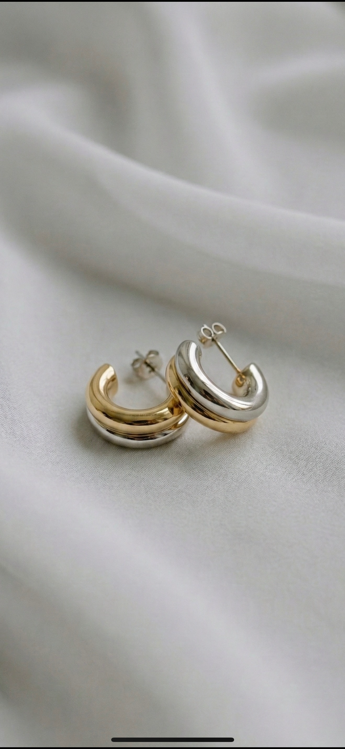 The Tony Hoops create an easy polished look with their two tone finish. The mix of metals makes them versatile for every outfit. Simple, clean, and perfect for daily wear.